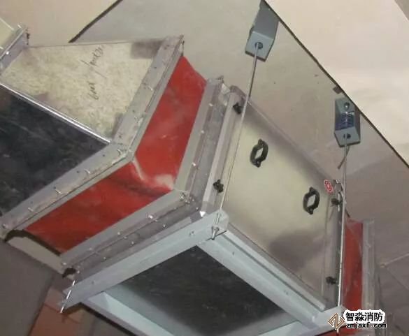 ② 大于630mm的防火閥需設(shè)獨(dú)立吊架。吊架設(shè)置不能影響防火閥執(zhí)行機(jī)構(gòu)動(dòng)作,應(yīng)采用在防火閥頂部設(shè)置吊耳的方法。
