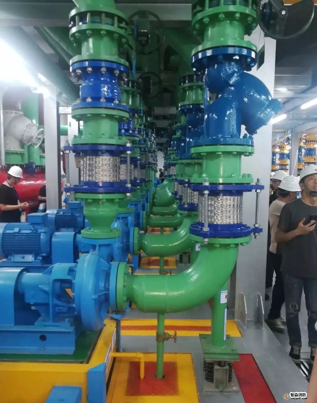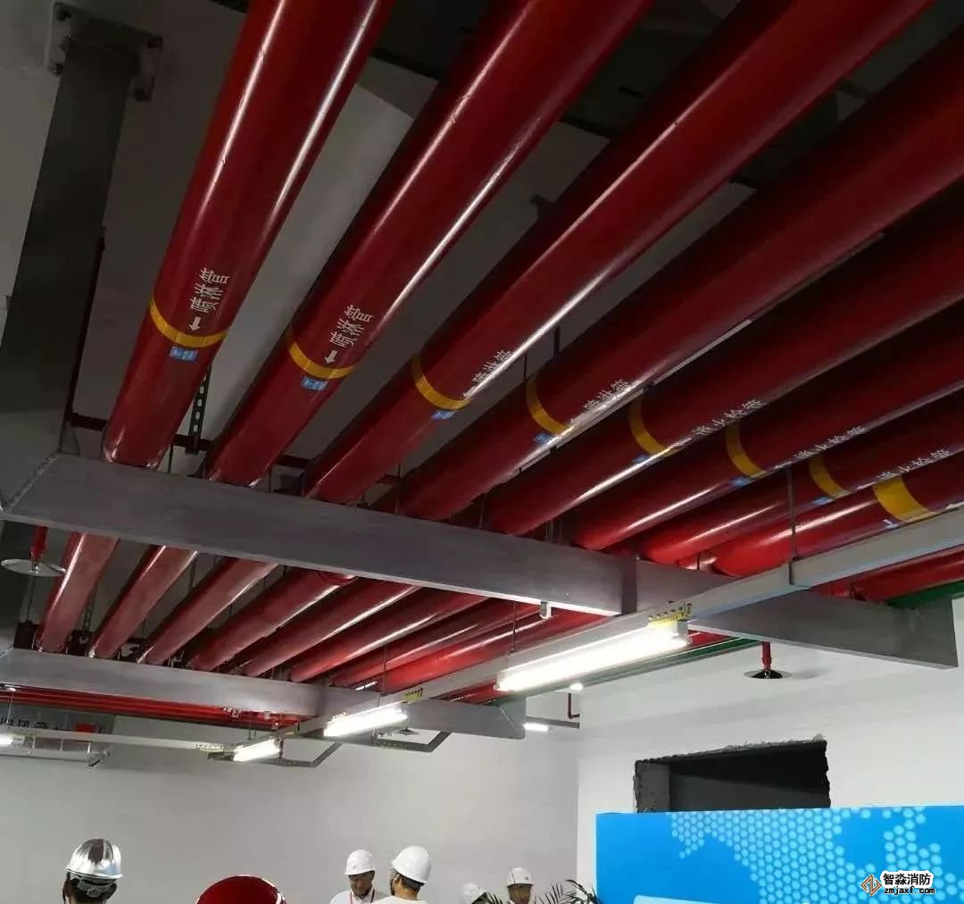 消防噴淋管道間距一致,標識清楚、成排成線。