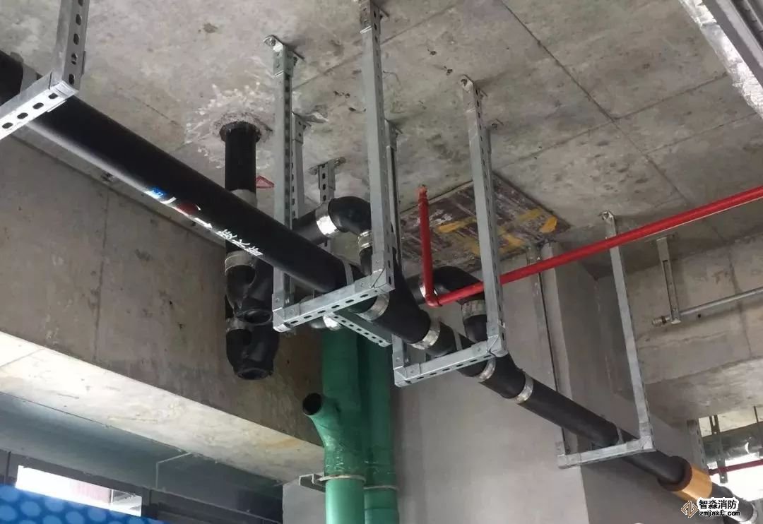 豎向排水管道,外用防護膜保護,支架結實耐用,管根設置橡膠圈,界面分明。