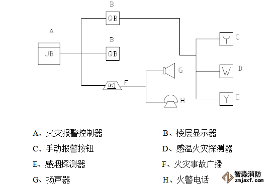 火災(zāi)自動報警系統(tǒng)的基本結(jié)構(gòu)如圖: