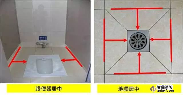 1、衛(wèi)生器具安裝:根據(jù)衛(wèi)生器具規(guī)格、間距及排水管位置進(jìn)行排布,使器具與排水管、配件與墻面磚騎縫或居中。水嘴出水口宜于臺(tái)盆落水口上下對(duì)正。排水管應(yīng)垂直,成排存水彎應(yīng)朝向一致,存水彎與排水管間隙用瀝青麻絲填塞密實(shí)后加不銹鋼裝飾圈,地漏應(yīng)避開(kāi)人上廁所時(shí)常站的地方,且距板塊中間對(duì)稱設(shè)置。