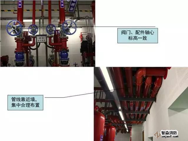 質(zhì)量控制要點(diǎn):成排成線,部件標(biāo)高、朝向一致,維護(hù)方便,各專業(yè)必須依照綜合管線布置圖施工(距離管線彎頭500mm范圍內(nèi)應(yīng)設(shè)置支吊架)。