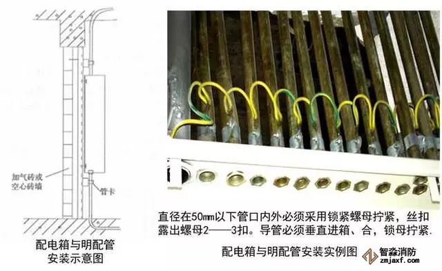 質(zhì)量控制要點(diǎn):管口光滑,開(kāi)孔尺寸與線管一致,固定牢固,接地可靠。
