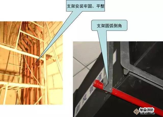 質(zhì)量控制要點(diǎn):支架安裝牢固,成排支架應(yīng)排列成線、標(biāo)高一致。