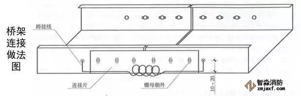 1、橋架直線段安裝連接:按圖測(cè)量、放線、定位;支架安裝時(shí)應(yīng)掛線或彈線找直,用水平尺找平,以保證成排支架安裝后橫平豎直;橋架用連接片連接(或連接段連接),墊圈、彈簧墊、螺母緊固,螺母應(yīng)位于橋架外側(cè)。除鍍鋅橋架外,相鄰段橋架之間應(yīng)采用不小于4mm²軟銅線做接地跨接。在橋架外,沿橋架全長(zhǎng)敷設(shè)不小于φ8的圓鋼或25x4的鍍鋅扁鋼接地母線,每個(gè)支架和接地母線可靠跨接,接地母線刷黃綠相間油漆。采用橋架連接段連接的優(yōu)點(diǎn)是橋架底部無(wú)縫隙,整齊美觀。