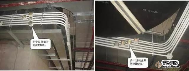 質(zhì)量控制要點(diǎn):支吊架間距均勻,彎曲半徑符合要求,電管安裝橫平豎直、固定牢固、排列整齊、內(nèi)壁光滑無(wú)毛刺,接地良好。