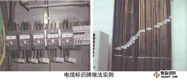 在電纜始端、末端、轉(zhuǎn)彎處、分支處應(yīng)設(shè)置標(biāo)識(shí),電氣豎井橋架內(nèi)每層每根電纜均應(yīng)標(biāo)識(shí),標(biāo)識(shí)牌應(yīng)采用定型加工的電纜標(biāo)牌用尼龍?jiān)鷰Ы壴陔娎|上。