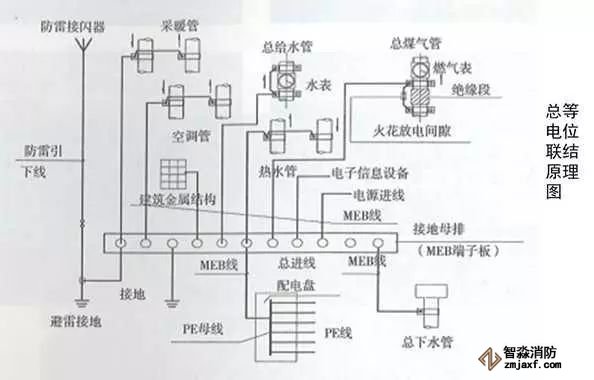 8、等電位連接:按圖紙?jiān)O(shè)計(jì)預(yù)埋或明裝接地干線,接地干線與等電位箱接地排連接,等電位箱與裸露金屬構(gòu)件連接。等電位接地干線應(yīng)從與接地裝置有不小于2處直接連接的干線引出,等電位連接干線或局部等電位箱間形成環(huán)路,支線間不應(yīng)串聯(lián)。等電位箱體表面應(yīng)標(biāo)識(shí)明確。