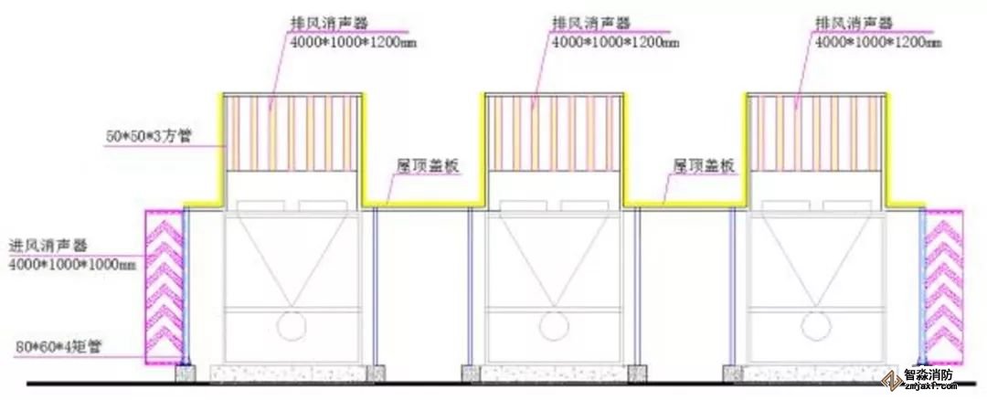 屋頂落地式風(fēng)機(jī)安裝示意圖