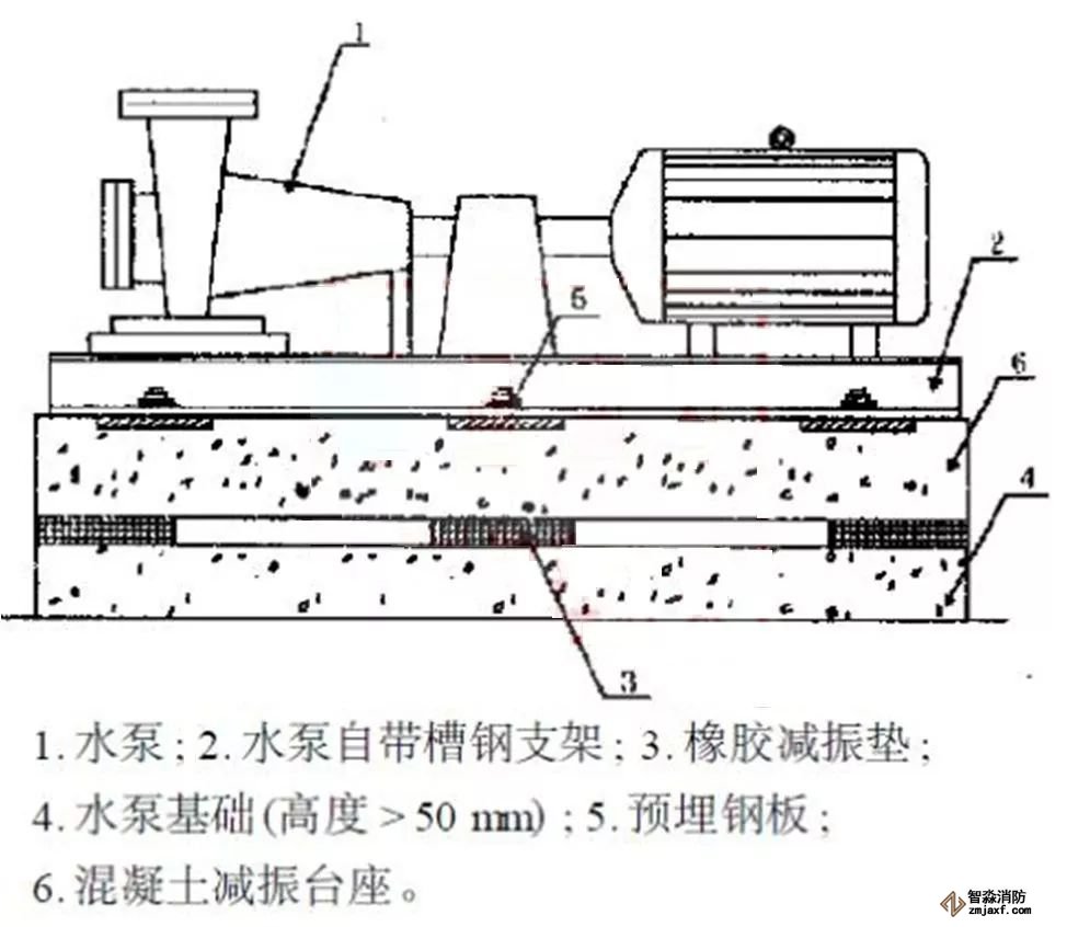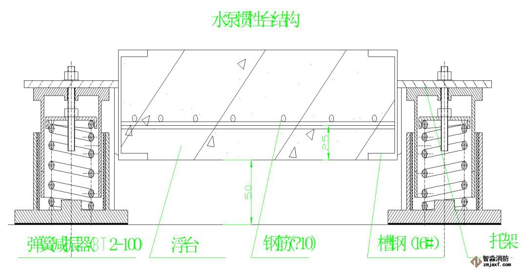 用混凝土制作水泵慣性塊與減震器固定在一起