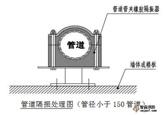 3. 在管路的支吊架、穿墻處使用非燃軟性材料填充做減振處理。