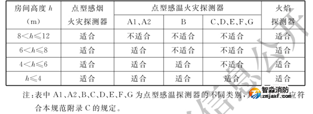 5.2.1 對不同高度的房間,可按表5.2.1選擇點型火災(zāi)探測器。