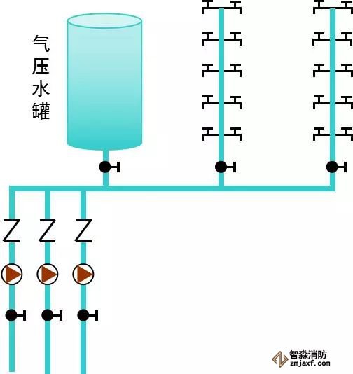 適用場(chǎng)所:外網(wǎng)水壓不能滿足所需水壓,用水不均勻,且不宜設(shè)水箱時(shí)采用。