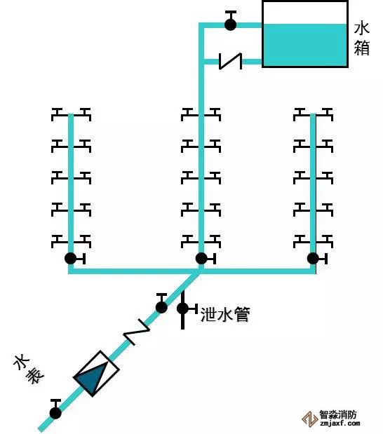 (3)設(shè)有貯水池、水箱和水泵的給水方式
