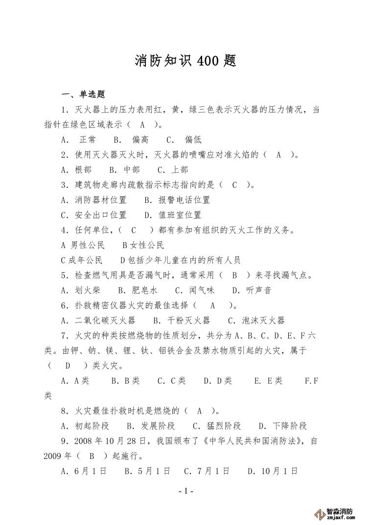 消防知識(shí)400題,用來(lái)考試還是競(jìng)賽?由你定(值得收藏?。?/font>