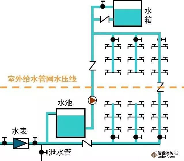 適用場所:供水壓力只能滿足建筑下層供水要求時采用