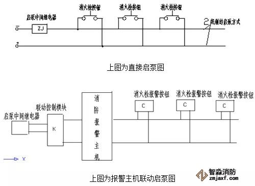 消火栓按鈕啟動(dòng)消防泵組分為直接啟動(dòng)消防泵和間接啟動(dòng)消防泵,原先許多工程因規(guī)范要求不明確,部分采用消火栓按鈕間接啟動(dòng)消防泵的控制方式;消火栓啟泵按鈕從接線方式分兩種,為消火栓按鈕并聯(lián)接線啟動(dòng)消防泵和按鈕串聯(lián)接線啟東消防泵。