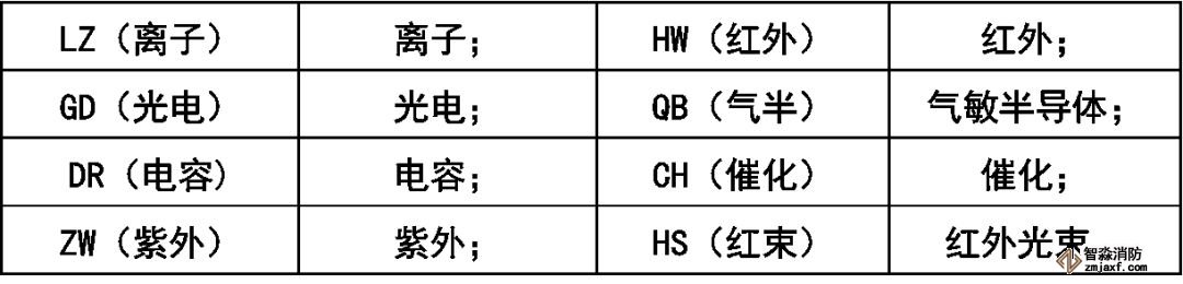火災(zāi)探測(cè)器分類代號(hào):
