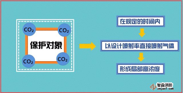 局部應(yīng)用滅火系統(tǒng)指在規(guī)定的時(shí)間內(nèi)向保護(hù)對(duì)象以設(shè)計(jì)噴射率直接噴射氣體,在保護(hù)對(duì)象周圍形成局部高濃度,并持續(xù)一定時(shí)間的滅火系統(tǒng)。