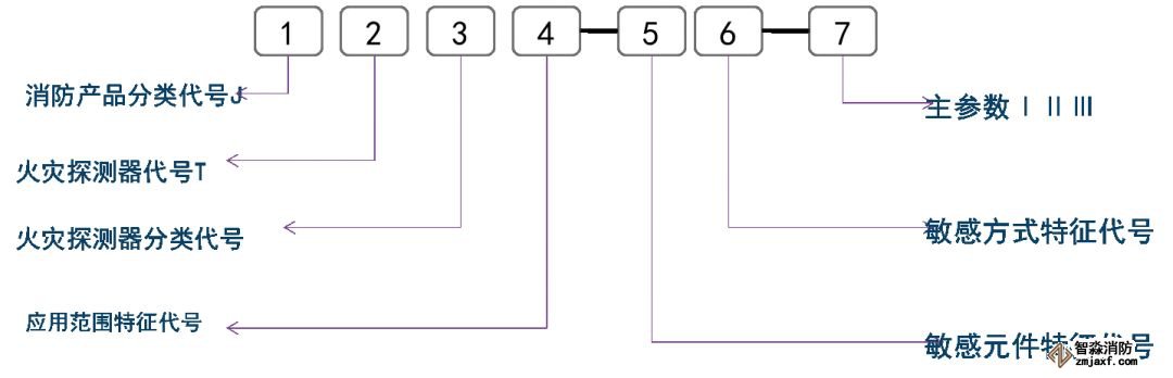 火災(zāi)探測(cè)器產(chǎn)品型號(hào)編制示例: