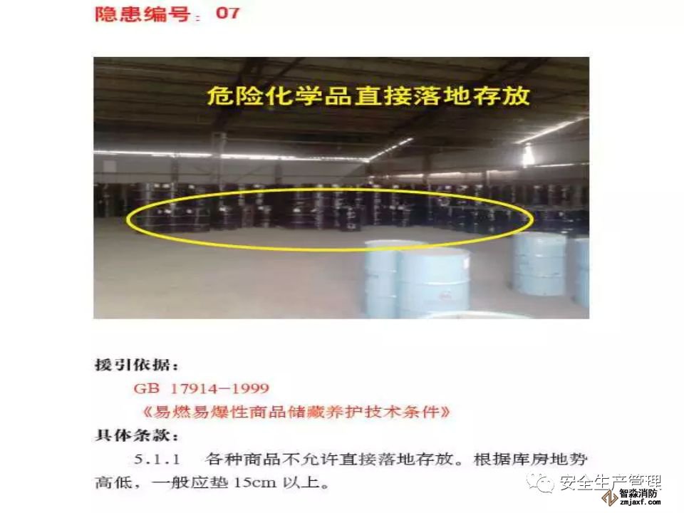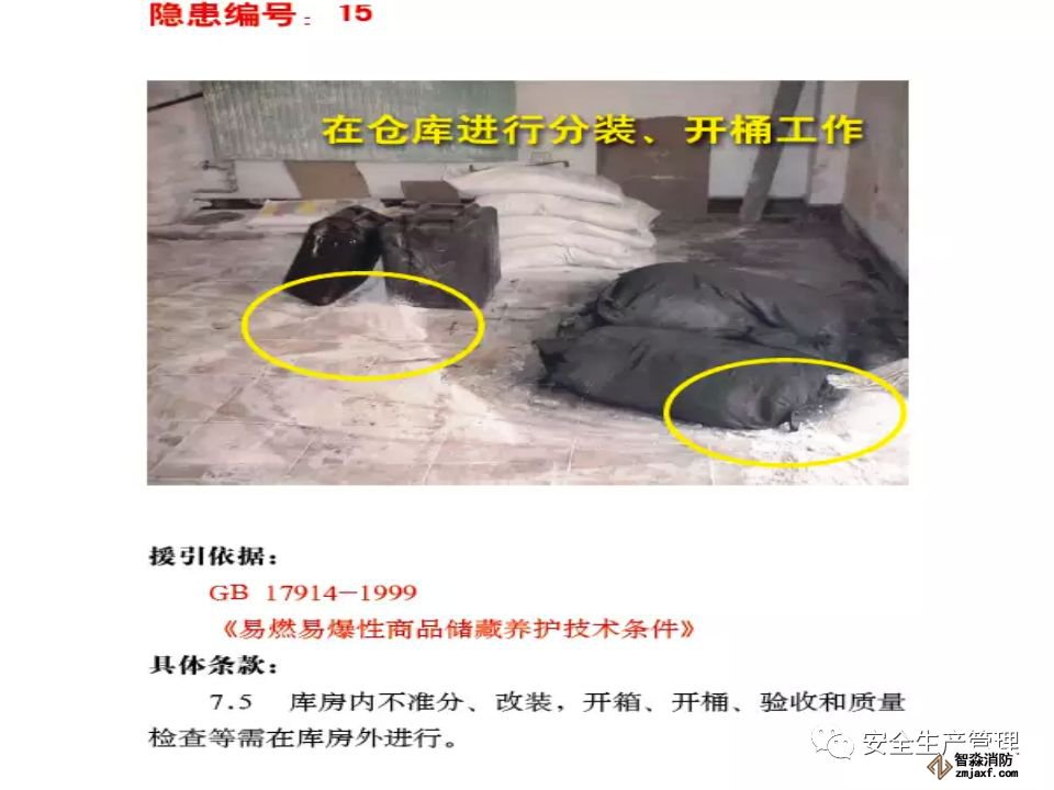 • 企業(yè)現(xiàn)場管理極其混亂,槽車運輸苯乙烯到廠后自行分裝到塑料大桶(1 噸/桶),在沒有控溫措施的甲類倉庫超量堆垛存放,使用塑料大桶盛裝苯乙烯在包裝物材質(zhì)、容量、儲存條件等均嚴(yán)重違反《工業(yè)用苯乙烯》(GB/T3915-2011)標(biāo)準(zhǔn)規(guī)定。生產(chǎn)車間內(nèi)大量存放原料及產(chǎn)品,倉庫超量儲存問題突出。
