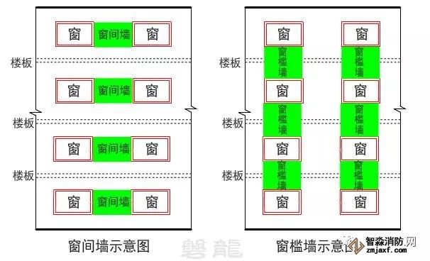 窗檻墻的功能和防火挑檐類似,是防止火災(zāi)通過建筑外立面的開口(從建筑外部)在上下層間蔓延。