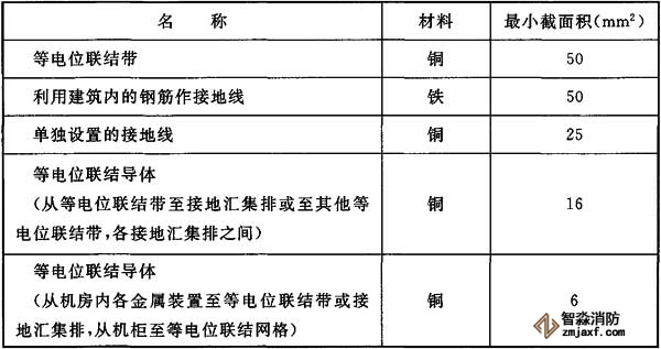 8、等電位聯(lián)結(jié)帶、接地線和等電位聯(lián)結(jié)導(dǎo)體的材料和最小截面積應(yīng)符合下表的規(guī)定。