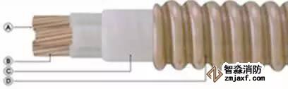 A. 導(dǎo)體:絞合銅導(dǎo)體;B. 絕緣:合成云母帶;C. 填充:無機(jī)材料;D. 銅套:縱包焊接并軋紋