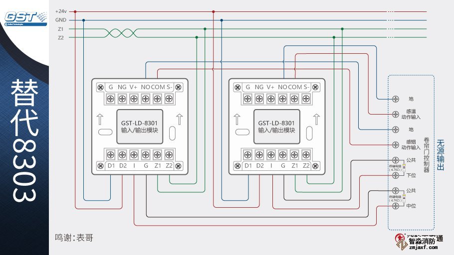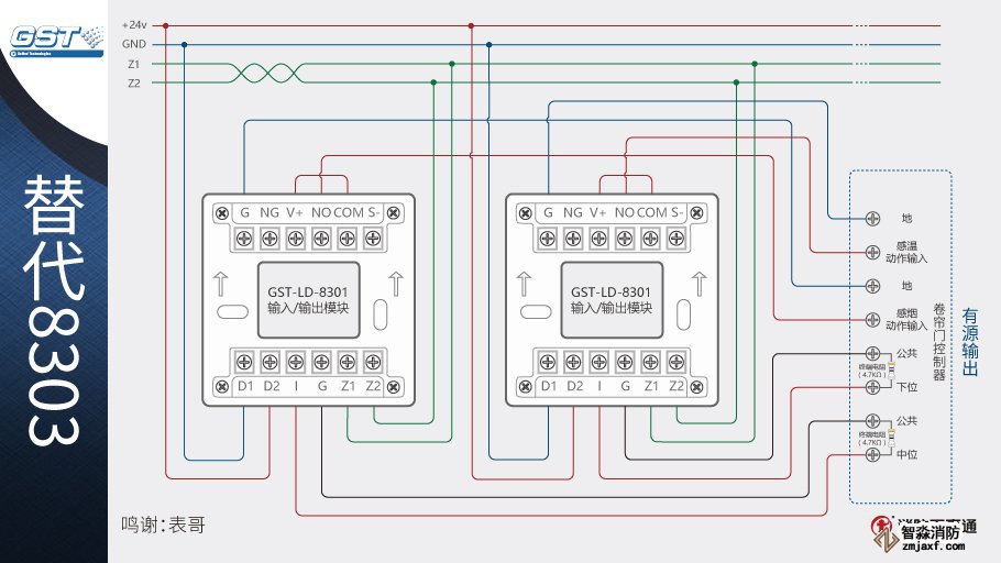 1、海灣8301模塊可以替代海灣的8303模塊控制防火卷簾,兩個8301模塊相當(dāng)于1個8303模塊。