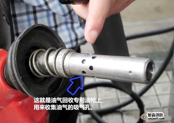 細心的客戶加油時一定會注意到,加油槍前端帶著一個橡膠皮碗,它的作用是封閉油箱、阻擋油氣外溢。在皮碗前端,還設(shè)有油氣回收吸氣孔。當(dāng)汽油注入油箱時,油箱內(nèi)產(chǎn)生的氣體通過吸氣孔返回儲油罐,這樣就完成了回收。