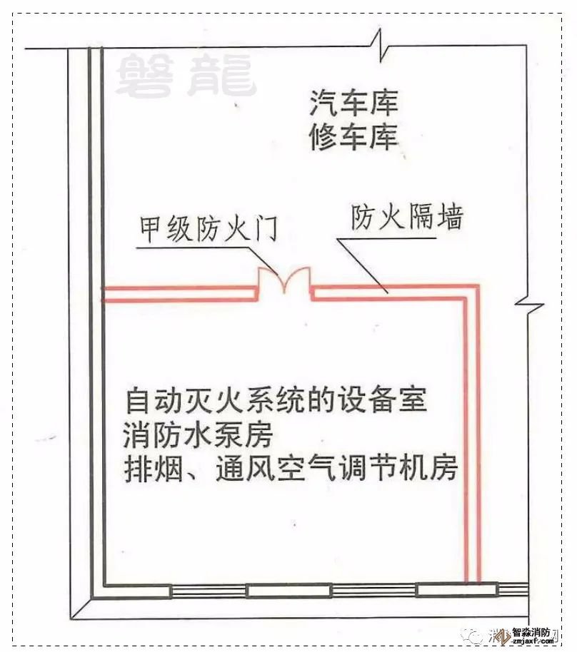 需要說明的是,同時為汽車庫和其他功能部分服務的設備用房,不應劃入汽車庫防火分區(qū),應采用防火墻和耐火極限不低于2.00h的不燃性樓板與汽車庫分隔,且人員不得通過汽車庫疏散,詳見專題:設備用房與汽車庫-疏散關系及應用誤區(qū)!