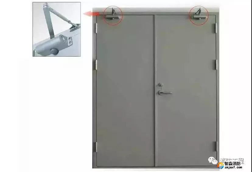 雙扇防火門應具有按順序自行關閉的功能,通過順序器來實現(xiàn)。