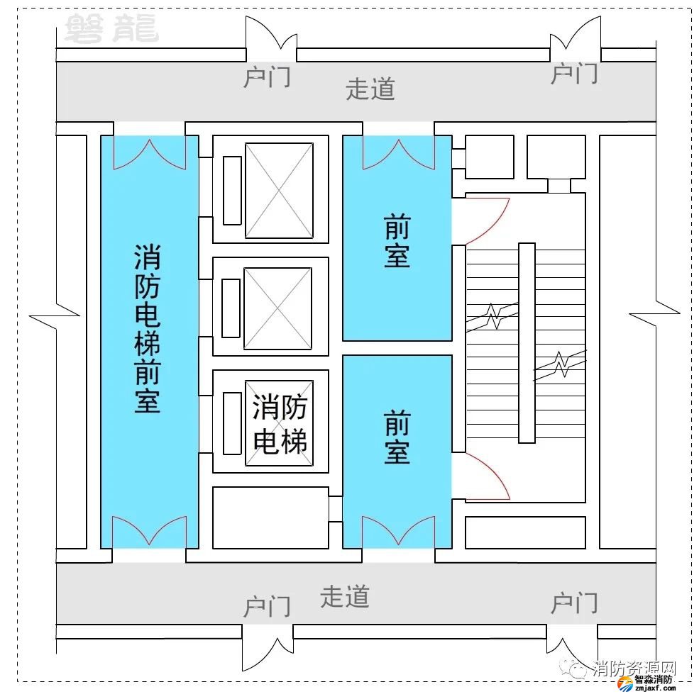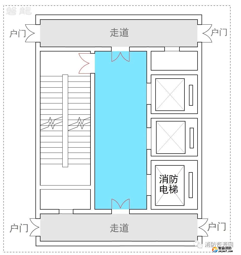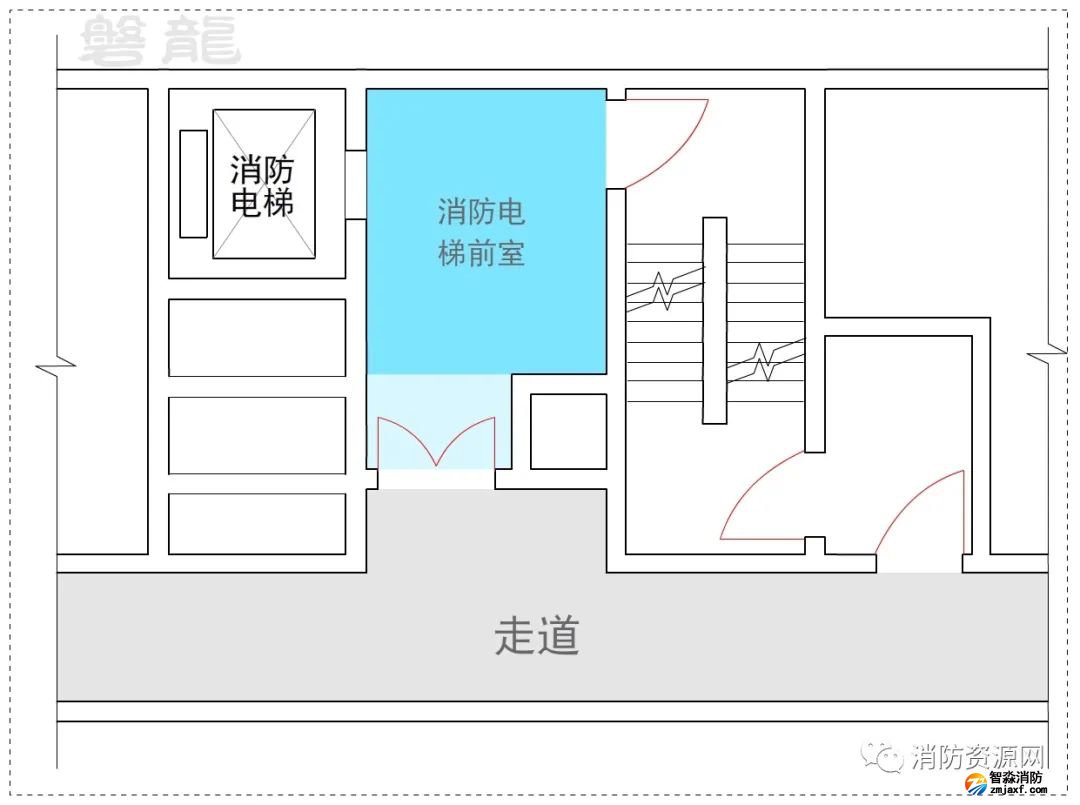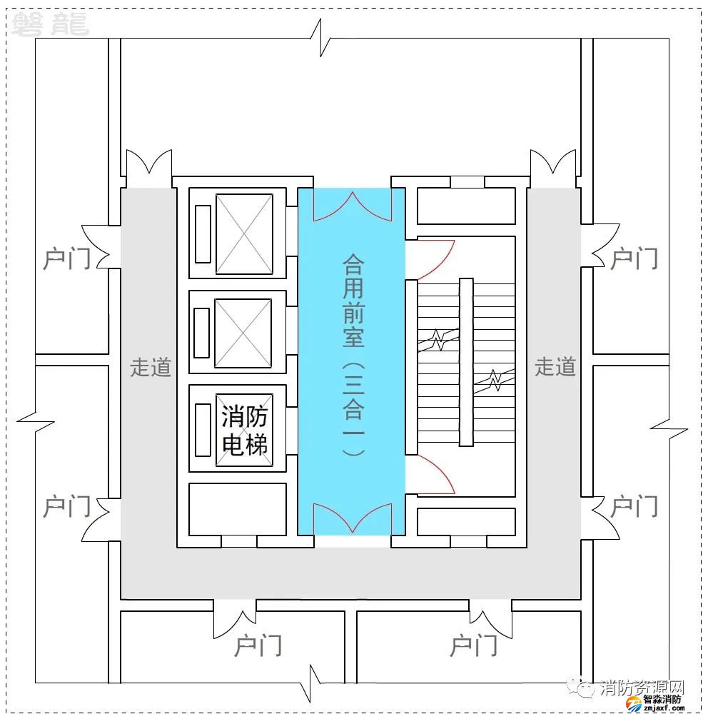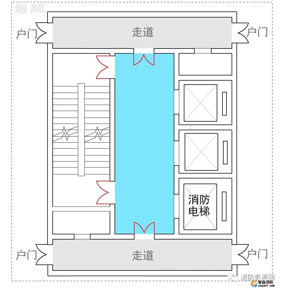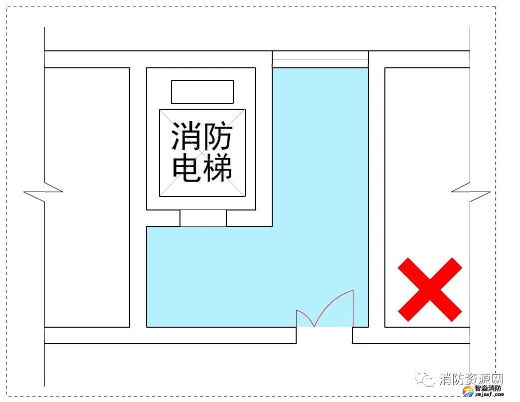 三、公共建筑人員較為繁雜,穿套前室會(huì)直接影響消防電梯前室的封閉性能,且人員不一定熟悉現(xiàn)場(chǎng)環(huán)境,封閉的消防電梯前室門(mén)可能導(dǎo)致疏散盲區(qū),因此,公共建筑不應(yīng)許可穿套消防電梯前室。