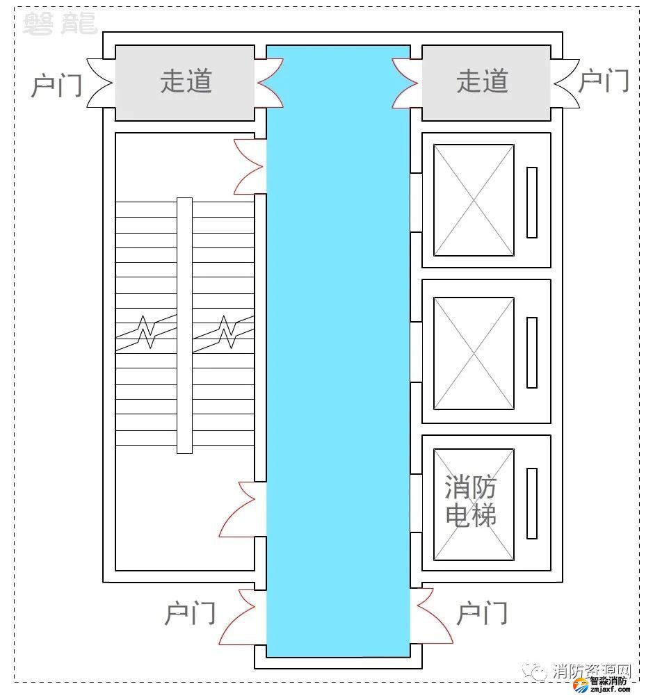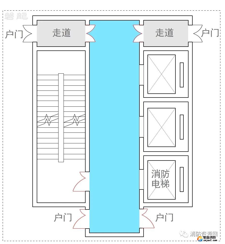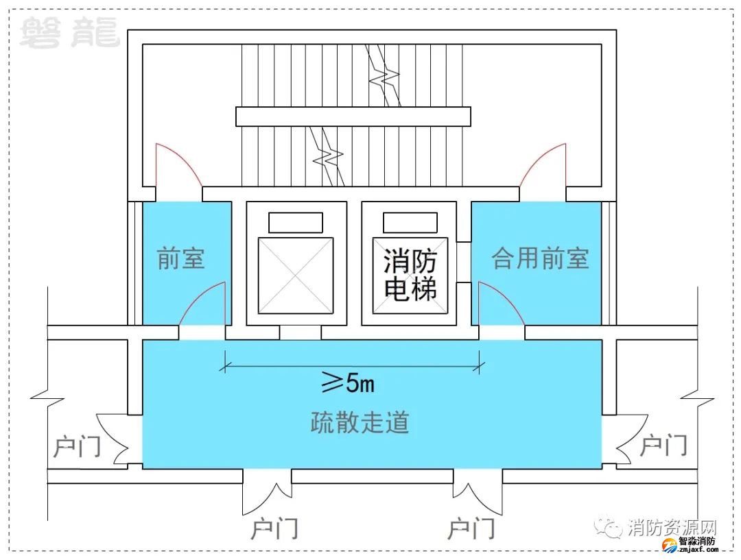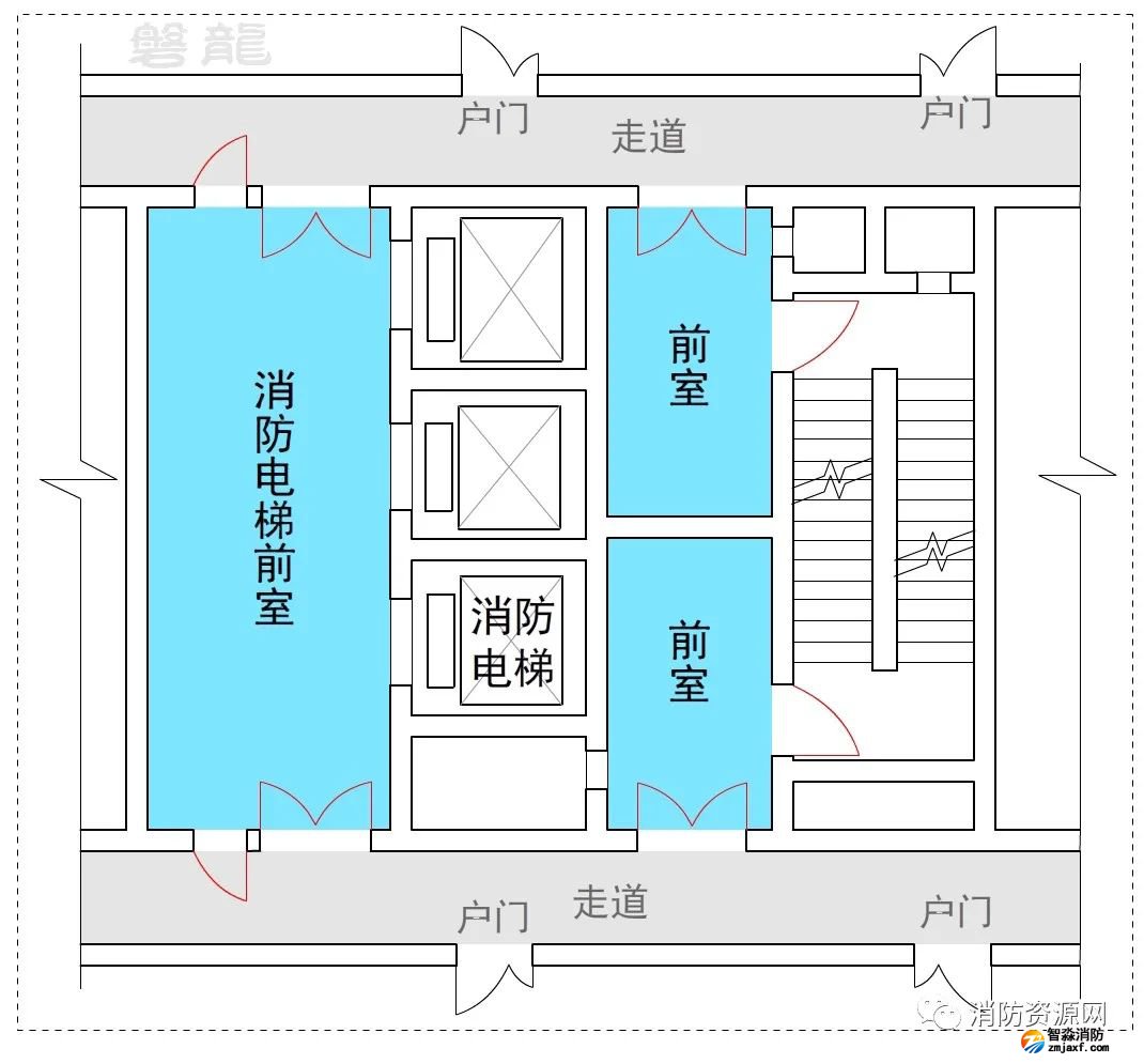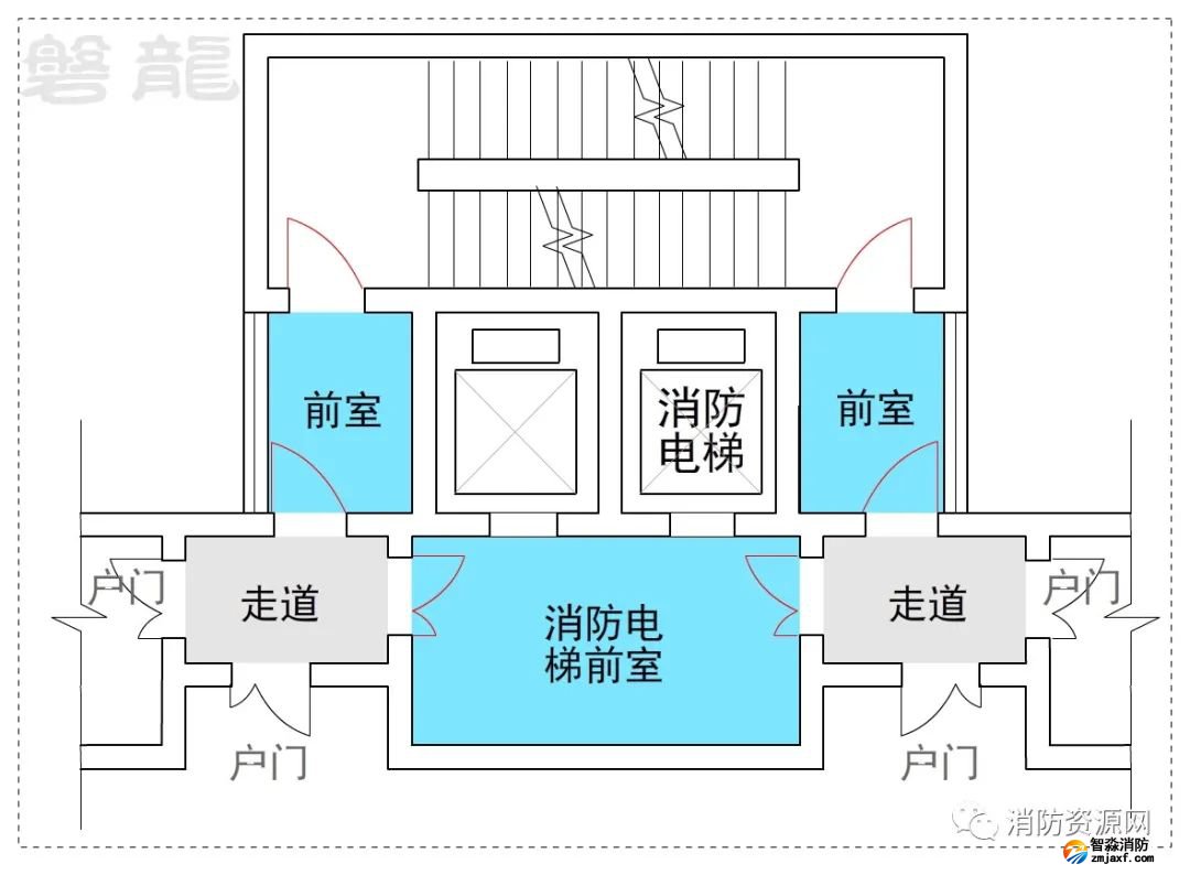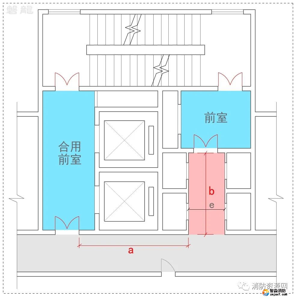 三、公共建筑人員較為繁雜,穿套前室會(huì)直接影響消防電梯前室的封閉性能,且人員不一定熟悉現(xiàn)場(chǎng)環(huán)境,封閉的消防電梯前室門(mén)可能導(dǎo)致疏散盲區(qū),因此,公共建筑不應(yīng)許可穿套消防電梯前室。