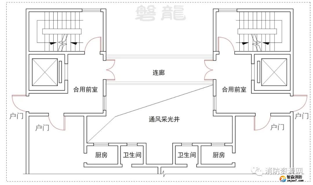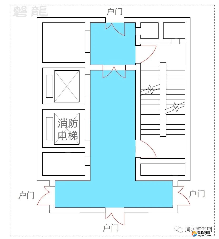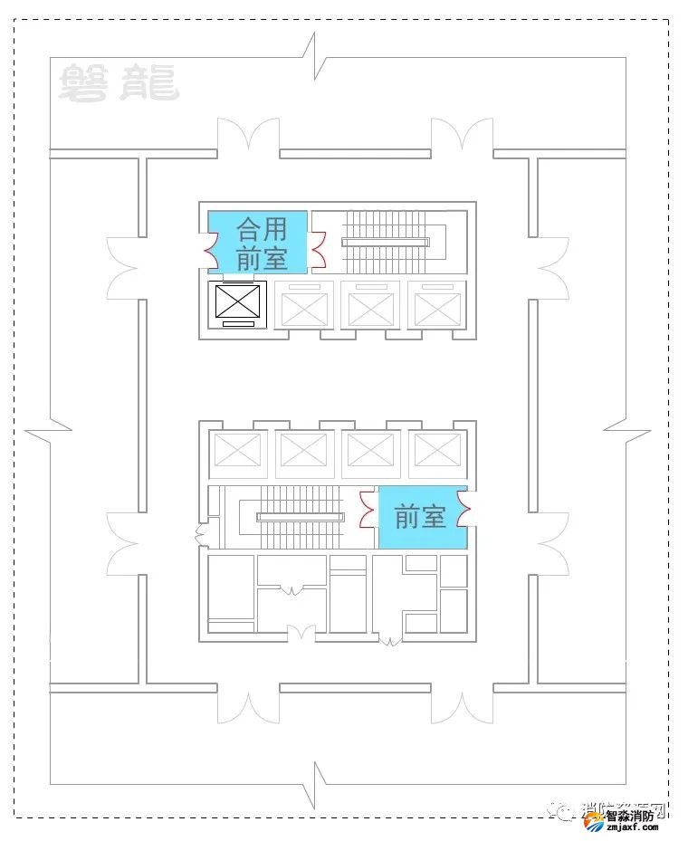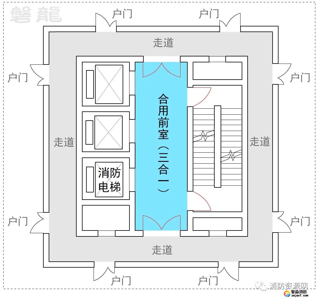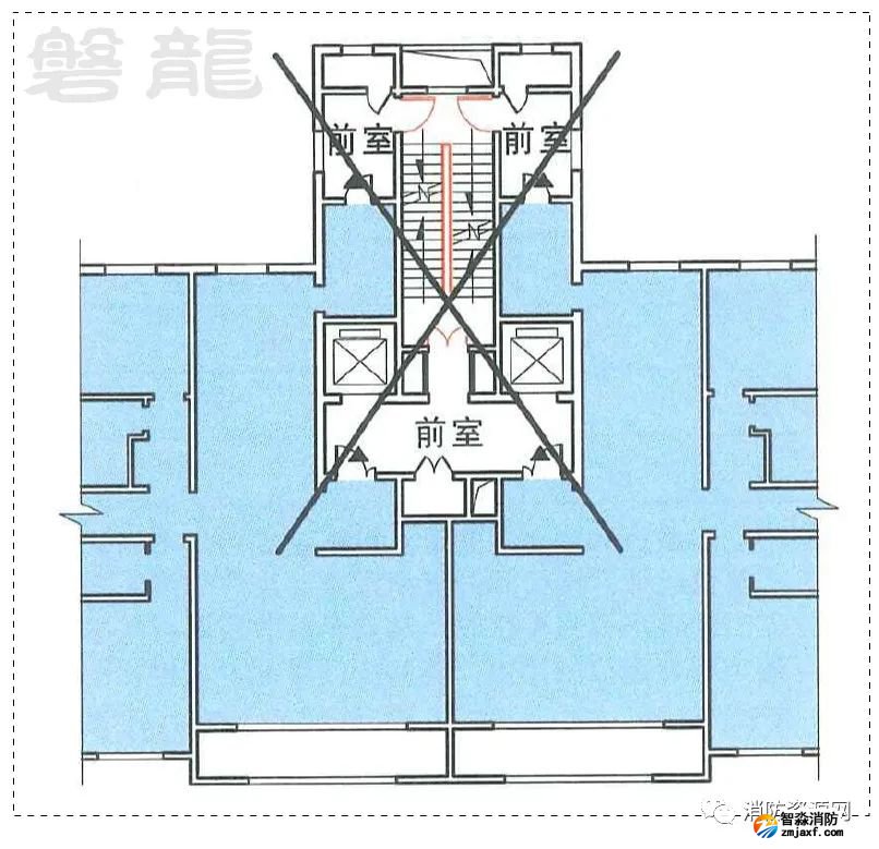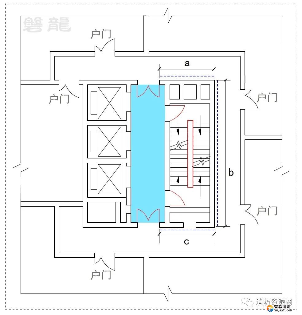 三、公共建筑人員較為繁雜,穿套前室會(huì)直接影響消防電梯前室的封閉性能,且人員不一定熟悉現(xiàn)場(chǎng)環(huán)境,封閉的消防電梯前室門(mén)可能導(dǎo)致疏散盲區(qū),因此,公共建筑不應(yīng)許可穿套消防電梯前室。
