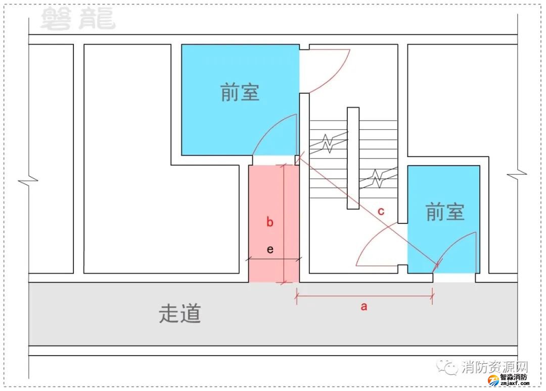 二、“前室穿套”的情況,屬于雙向借用,違反“疏散門(mén)應(yīng)向疏散方向開(kāi)啟”的強(qiáng)條要求:目前的防火門(mén)均為“單一方向旋轉(zhuǎn)”,并不存在雙向開(kāi)啟的防火門(mén)。