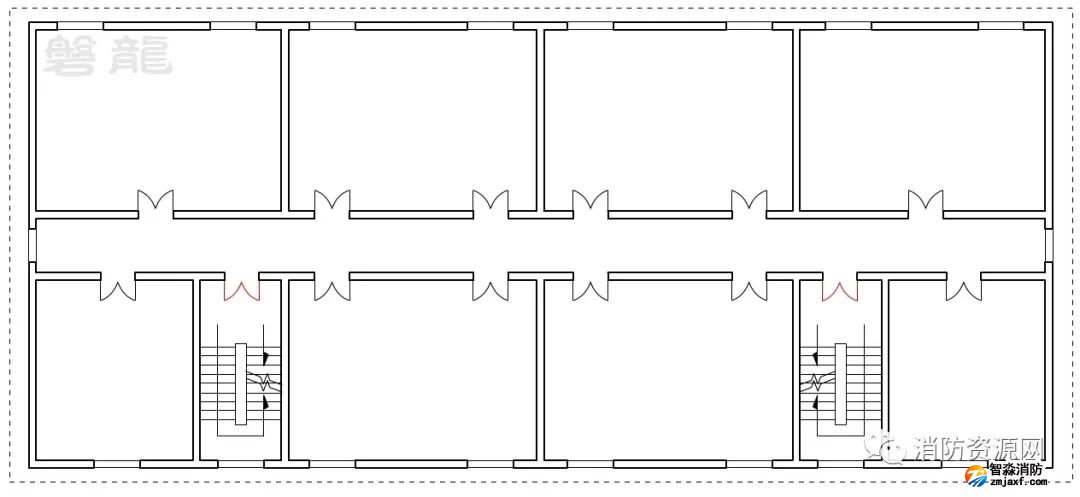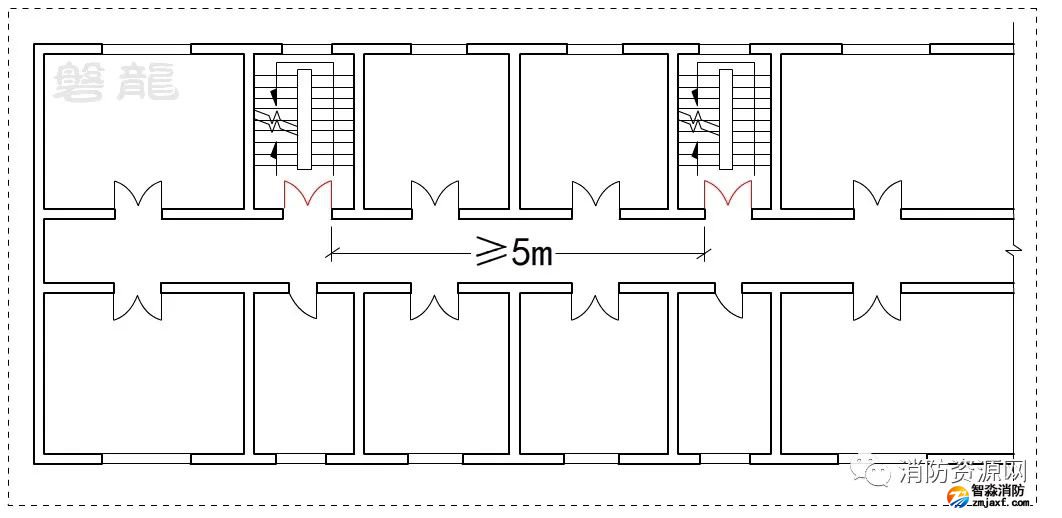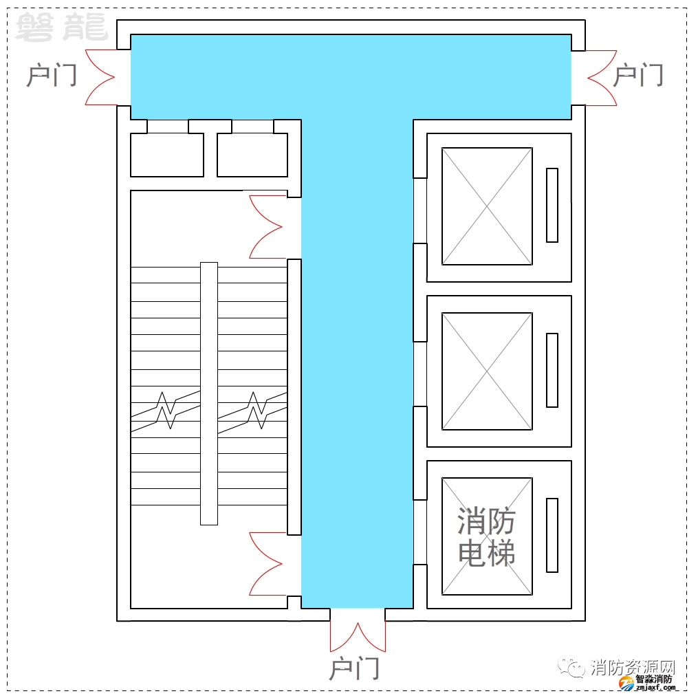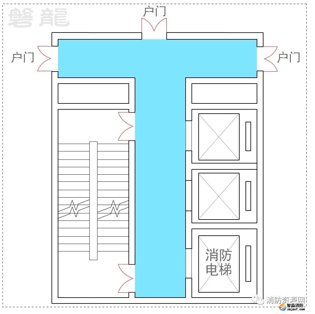 二、T形走道也稱(chēng)為丁字形走道(示例3),是消防安全疏散設(shè)計(jì)中不可回避的形式。