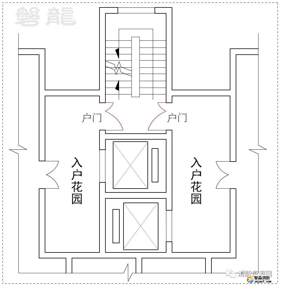 2、許可示例(示例27):本示例中,戶(hù)門(mén)直接對(duì)消防電梯前室開(kāi)放,也通常認(rèn)為可行:(有爭(zhēng)議)
