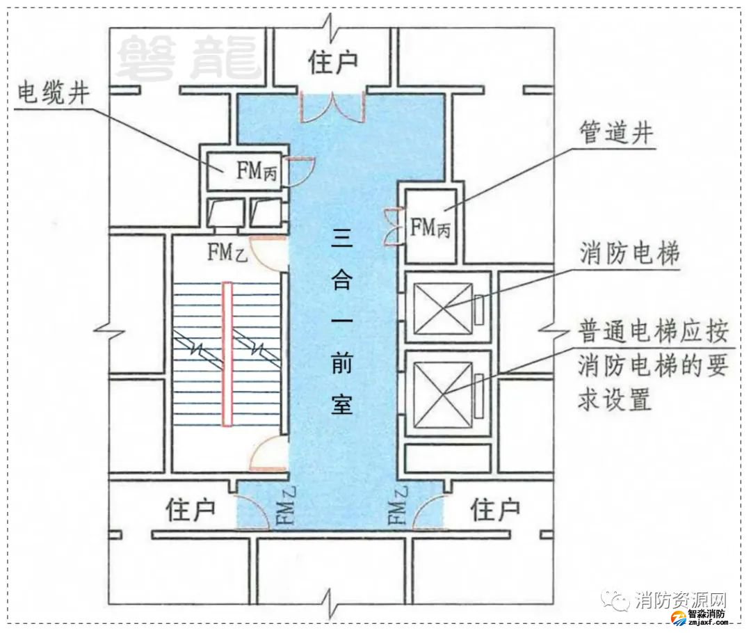 一、住宅建筑前室允許設(shè)置管井(電井)檢查門(mén),應(yīng)僅限于戶(hù)門(mén)直接開(kāi)向三合一前室和單一安全出口的合用前室,除此以外,管井(電井)檢查門(mén)不應(yīng)設(shè)置在住宅建筑的前室 。