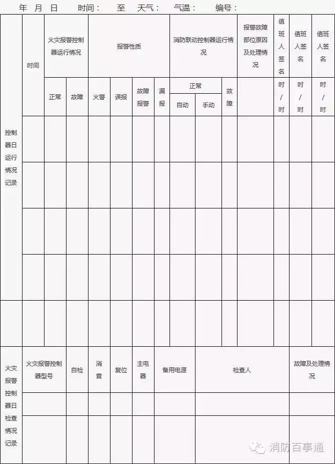 2、消防控制室值班人員應(yīng)當(dāng)在崗在位,認(rèn)真記錄控制器日行情況,每日檢查火災(zāi)報(bào)警控制器的自檢、消音、復(fù)位功能以及主備電源切換規(guī)能,并填寫附表的相關(guān)內(nèi)容。