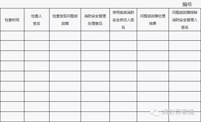 2、檢查發(fā)現(xiàn)建筑消防設(shè)施存在問題和故障的,實(shí)施檢查的人員必須向單位消防安全管理人報(bào)告,并填表。