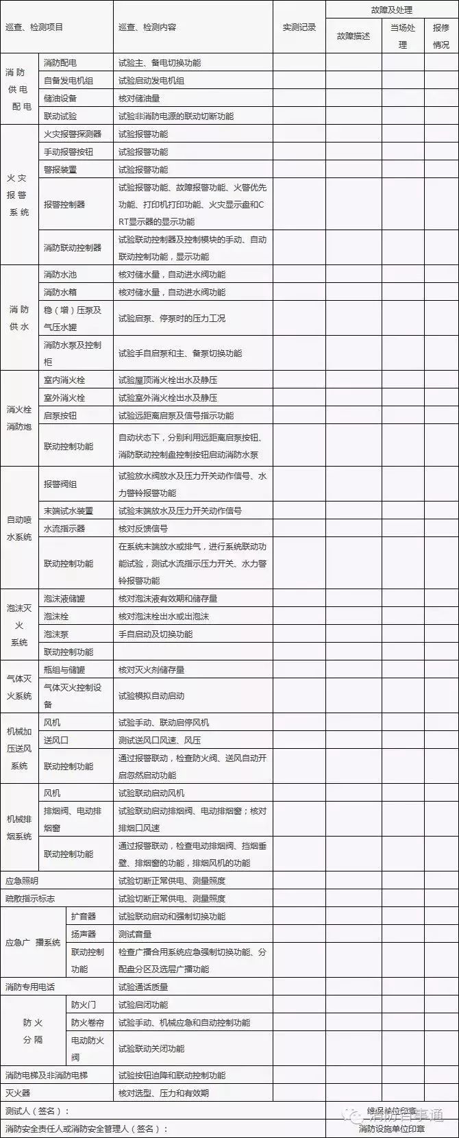 建筑消防設(shè)施巡查、維護(hù)保養(yǎng)、測試記錄表