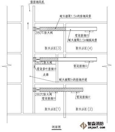4.機(jī)械排煙系統(tǒng)橫向應(yīng)按每個(gè)防火分區(qū)獨(dú)立設(shè)置。