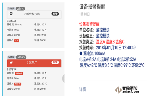現(xiàn)場(chǎng)配電柜(箱)監(jiān)測(cè)值一旦發(fā)生安全異常,觸發(fā)本地報(bào)警器發(fā)出聲、光報(bào)警,通過(guò)云平臺(tái)監(jiān)管系統(tǒng)手機(jī)APP、Web客戶端同步發(fā)出報(bào)警提示,多種方式提醒值班人員檢修。