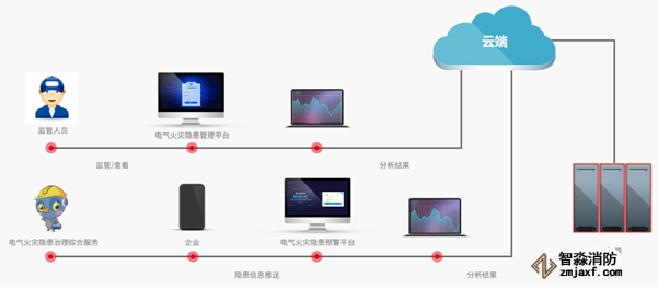 3、 通過(guò)云平臺(tái)對(duì)存儲(chǔ)數(shù)據(jù)的分析及判斷,及時(shí)掌握線路動(dòng)態(tài)運(yùn)行存在的用電安全隱患,及時(shí)發(fā)現(xiàn)電氣隱患,預(yù)防火災(zāi)發(fā)生,提高企業(yè)用電安全管理水平;