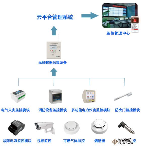 實現(xiàn)消防設(shè)施運行及監(jiān)管的現(xiàn)代化必須構(gòu)建有效的的消防監(jiān)控物聯(lián)網(wǎng)系統(tǒng),采用消防自動報警系統(tǒng)已有的各種感知設(shè)備、視頻采集設(shè)備等,將感知采集到的大量現(xiàn)場信息,借助消防物聯(lián)網(wǎng)傳輸?shù)较乐笓]中心,將過去封閉、功能單一的火災(zāi)報警系統(tǒng)改造為網(wǎng)格化、智能化的跨區(qū)域火災(zāi)報警綜合管理平臺。