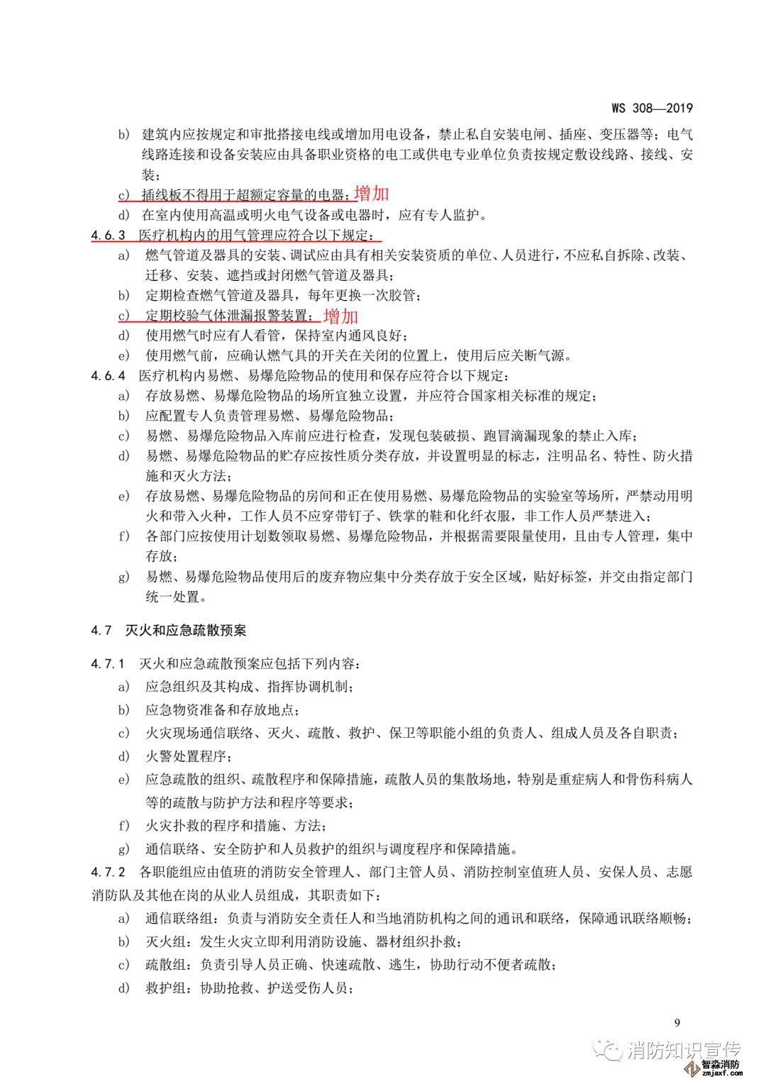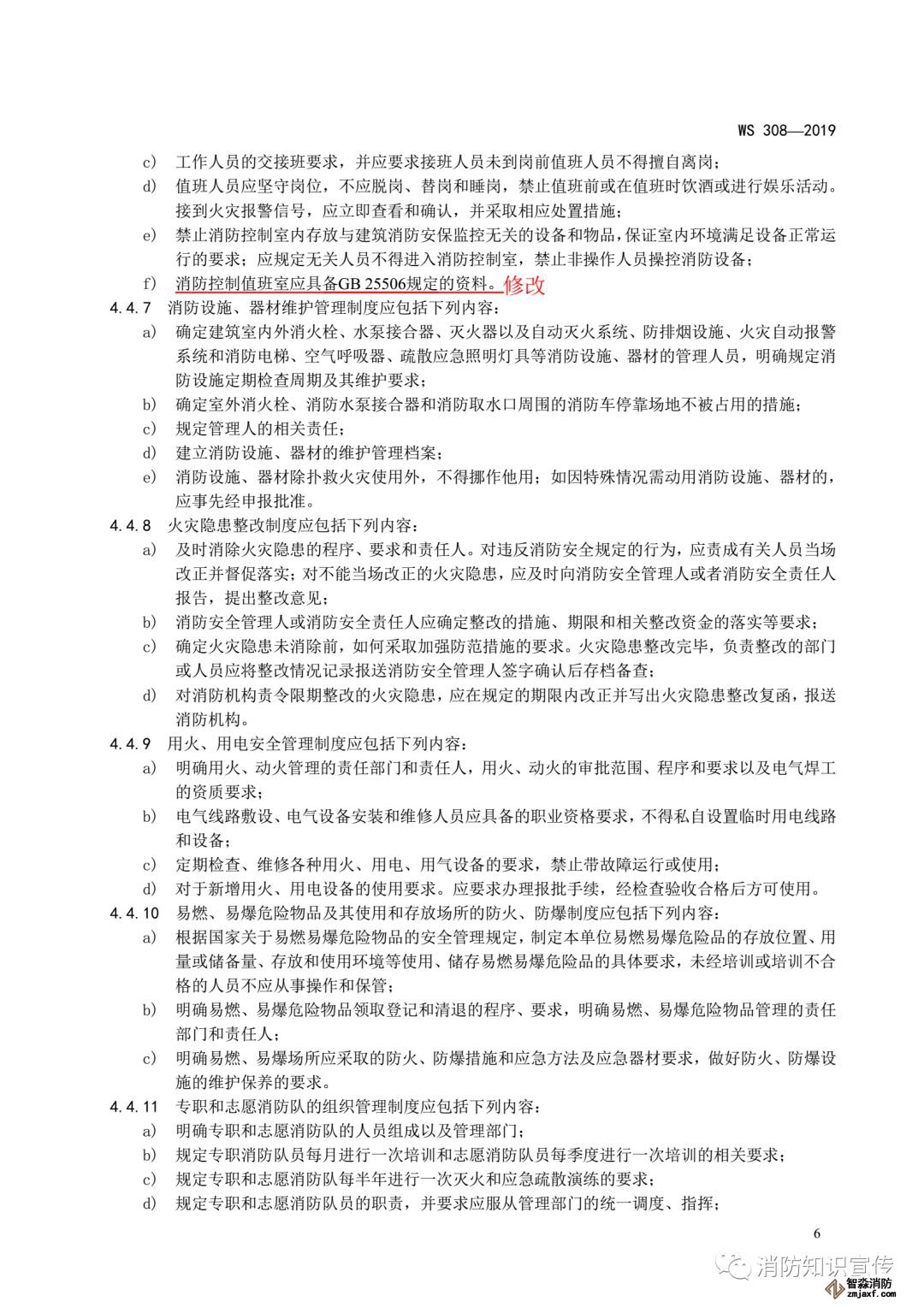 ——修改了各部門、科室的消防安全責(zé)任人的職責(zé)要求(見4.2.7, 2009年版的4.2.6);