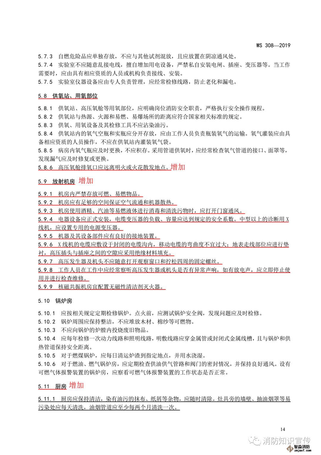 ——增加了放射機(jī)房消防安全管理要求(見5.9);