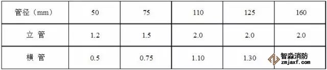 表5.2.9 排水塑料管道支吊架最大間距(單位:m)