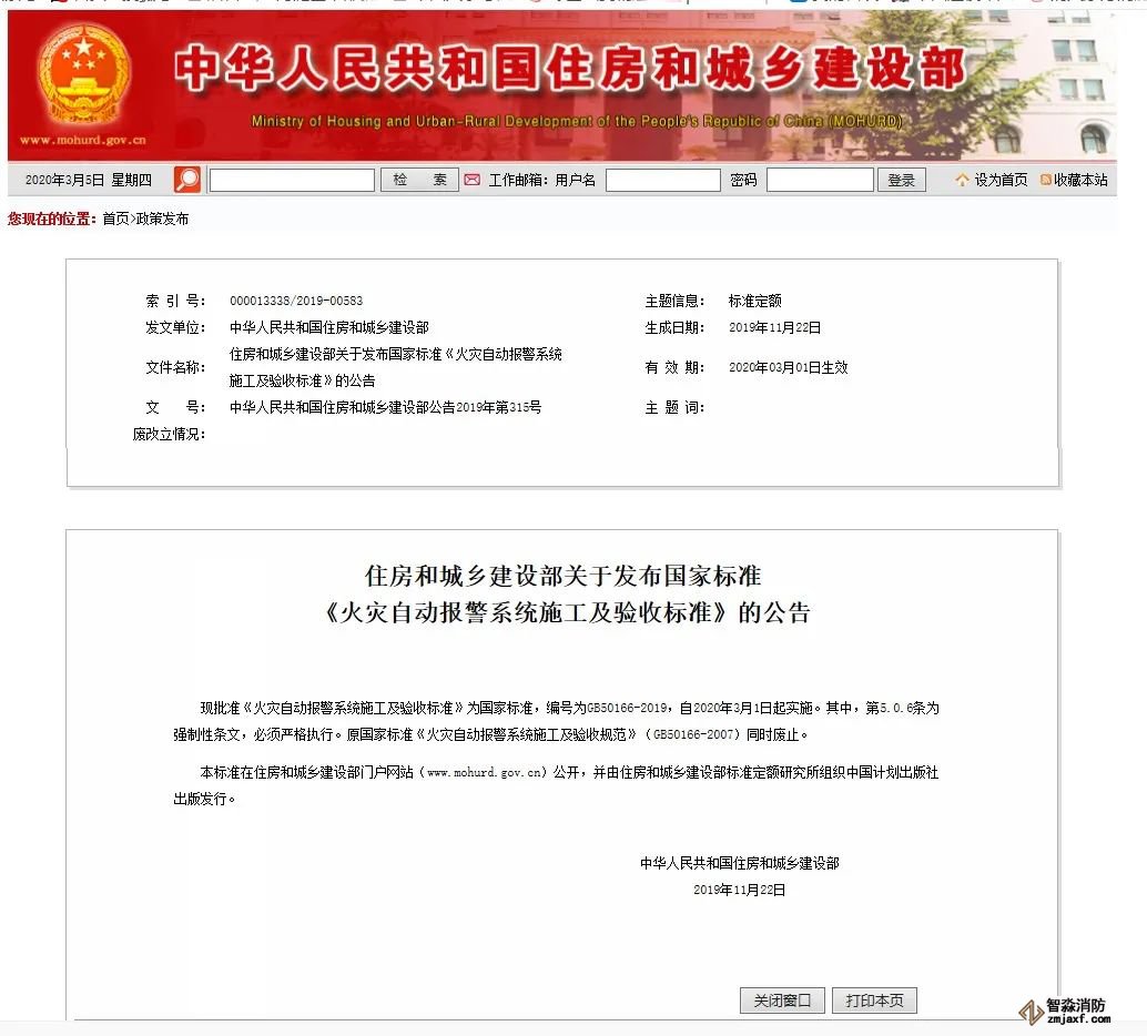 近日,住房和城鄉(xiāng)建設(shè)部發(fā)布公告,批準(zhǔn)《火災(zāi)自動(dòng)報(bào)警系統(tǒng)施工及驗(yàn)收標(biāo)準(zhǔn)》為國(guó)家標(biāo)準(zhǔn),編號(hào)為GB50166-2019,自2020年3月1日起實(shí)施。原國(guó)家標(biāo)準(zhǔn)《火災(zāi)自動(dòng)報(bào)警系統(tǒng)施工及驗(yàn)收規(guī)范》(GB50166-2007)同時(shí)廢止。